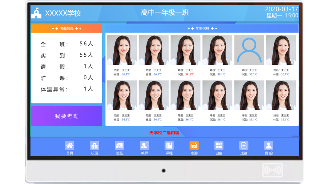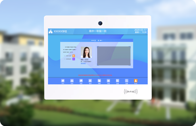電子班牌可以準(zhǔn)確對比學(xué)生身份,人臉識別率可達(dá)到99.9%。